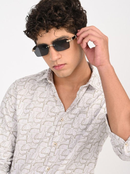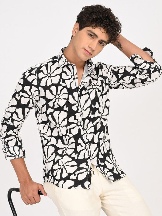 Men Black & White Abstract Printed Slim Fit Cotton Casual Shirt