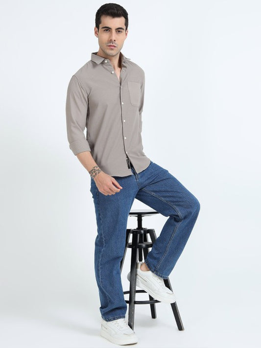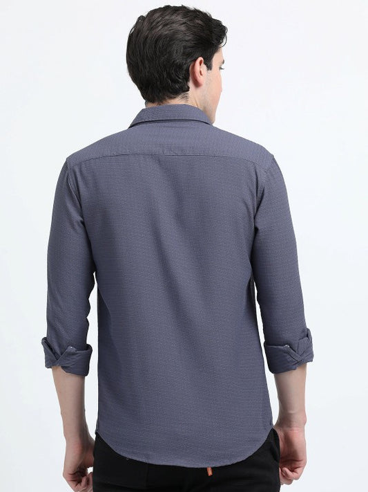 Grey Textured Slim Fit Cotton Casual Shirt for Men