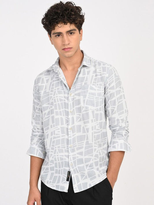 Men Abstract Printed Classic Blue & White Slim Fit Casual Shirt