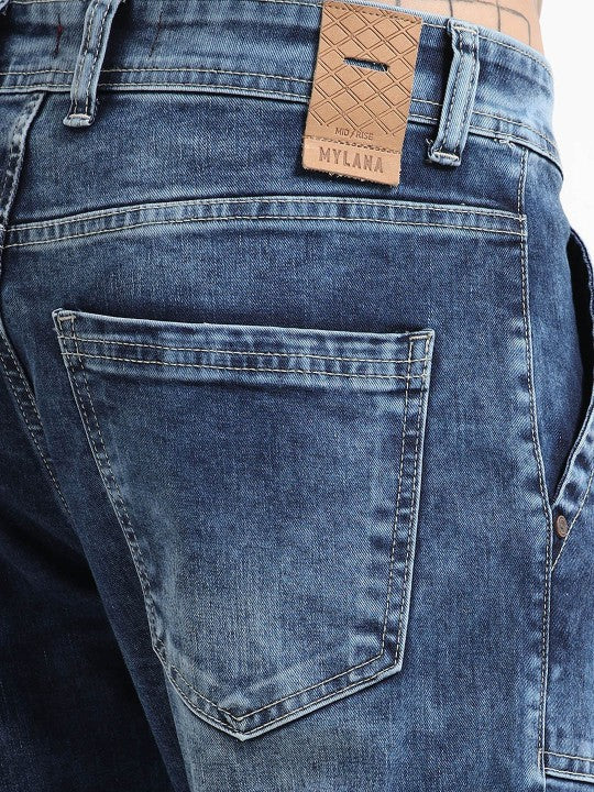 Upgrade your everyday essentials with these blue slim fit stretch cargo pants. Designed with a mid-rise waist and flat-front, they offer a clean, modern silhouette while delivering functional comfort. The woven cotton-elastane blend ensures breathability with added stretch for ease of movement. Featuring six utility pockets, including side cargo compartments, these pants combine smart style with practical storage. Regular in length, they pair effortlessly with sneakers or casual shoes for a versatile, all-day look. Machine washable and built for comfort, these cargos are your go-to for travel, work, or casual outings.